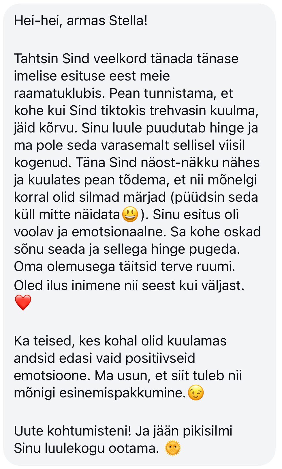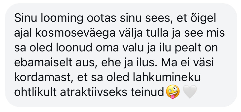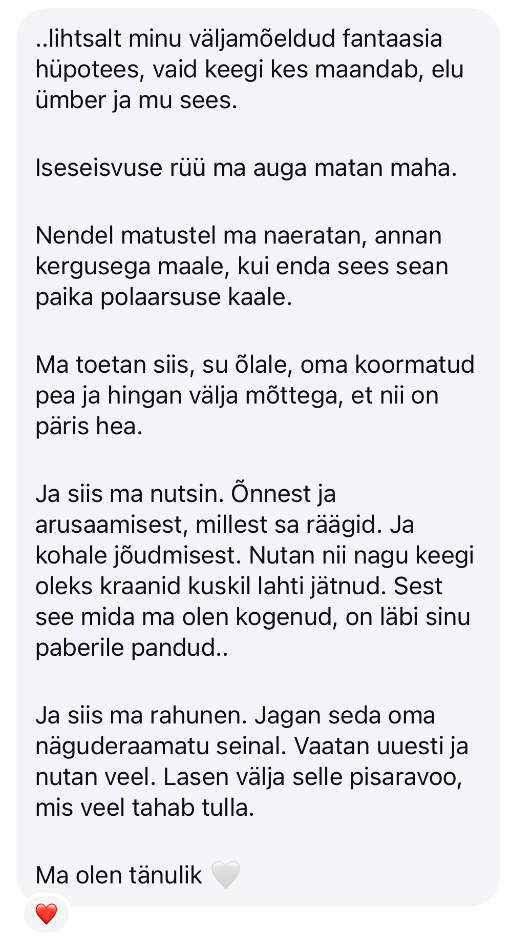 Kui raamat pole 10 tööpäeva jooksul pärast postitamisteadet sinuni jõudnud või on transportimisel viga saanud, võta ühendust thestellaterna@gmail.com ja leiame lahenduse.